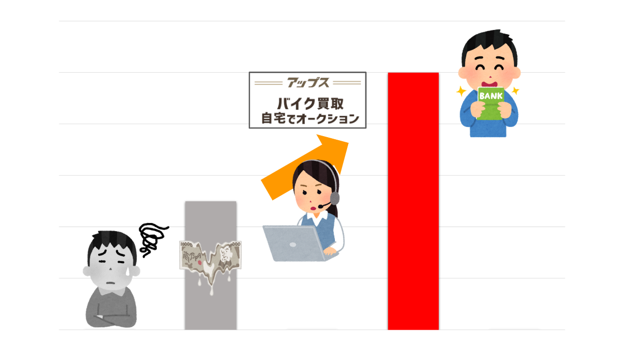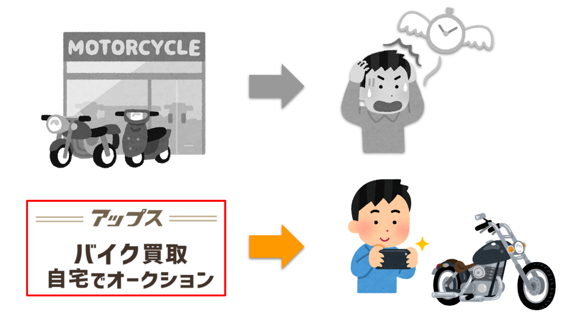 時間と手間を掛ければバイクは高く売れます。その一番面倒な部分を無料で代行してくれるアップスなら、あなたのバイクを最高額で売ってくれるでしょう。